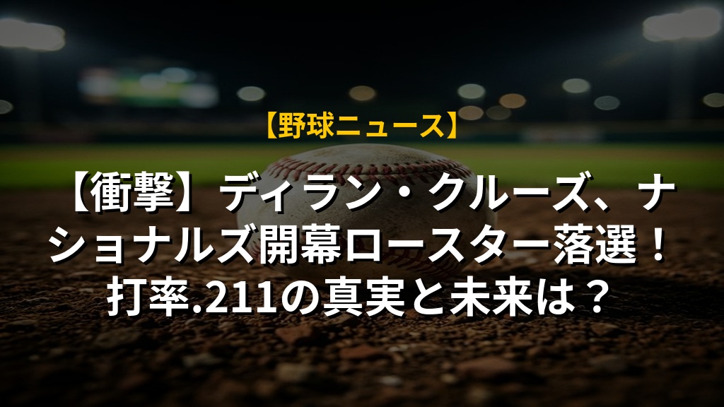 【衝撃】ディラン・クルーズ、ナショナルズ開幕ロースター落選!打率.211の真実と未来は?