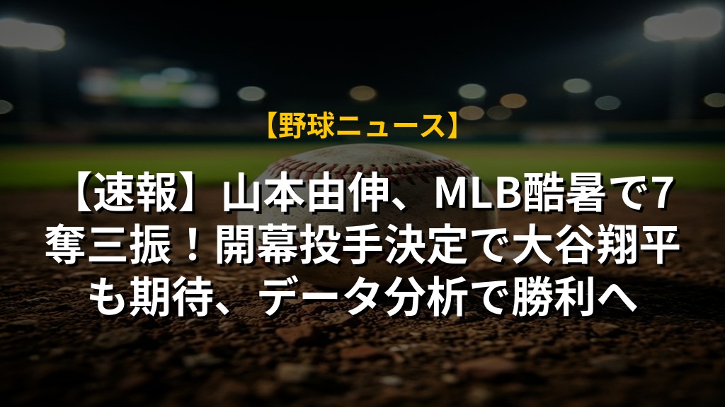 【速報】山本由伸、MLB酷暑で7奪三振!開幕投手決定で大谷翔平も期待、データ分析で勝利へ