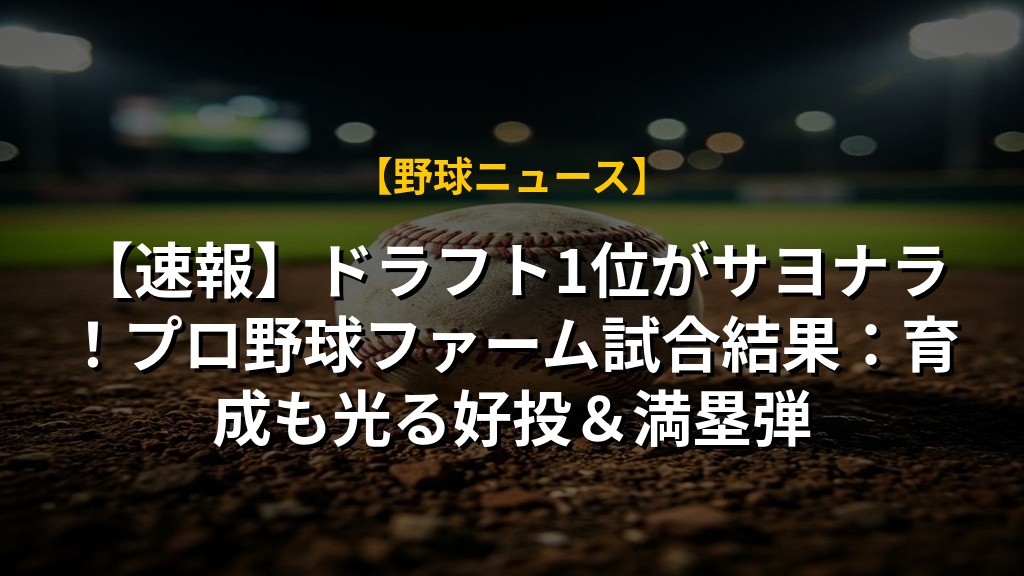 【速報】ドラフト1位がサヨナラ!プロ野球ファーム試合結果:育成も光る好投&満塁弾