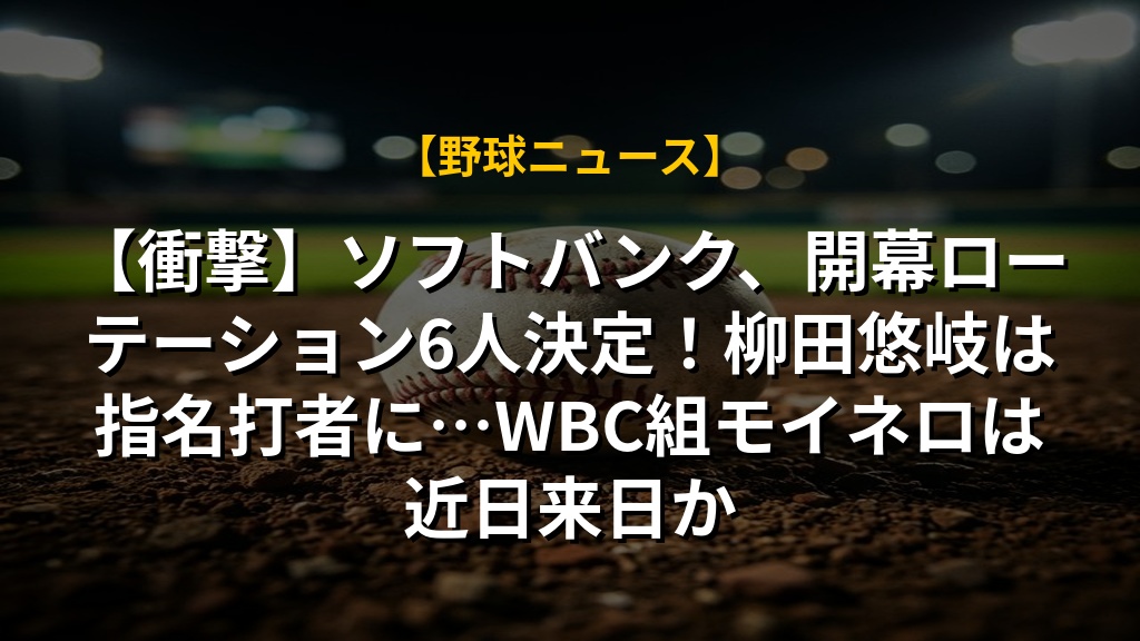 【衝撃】ソフトバンク、開幕ローテーション6人決定!柳田悠岐は指名打者に…WBC組モイネロは近日来日か