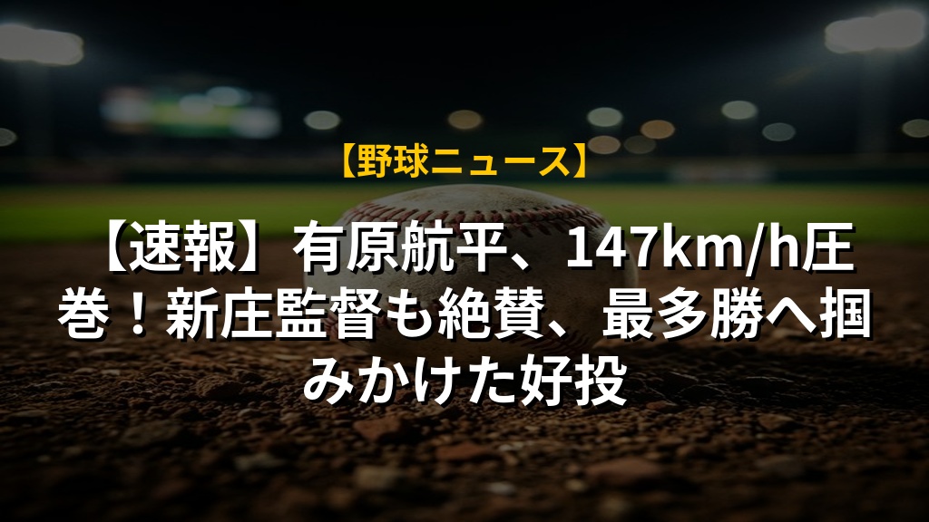 【速報】有原航平、147km/h圧巻!新庄監督も絶賛、最多勝へ掴みかけた好投