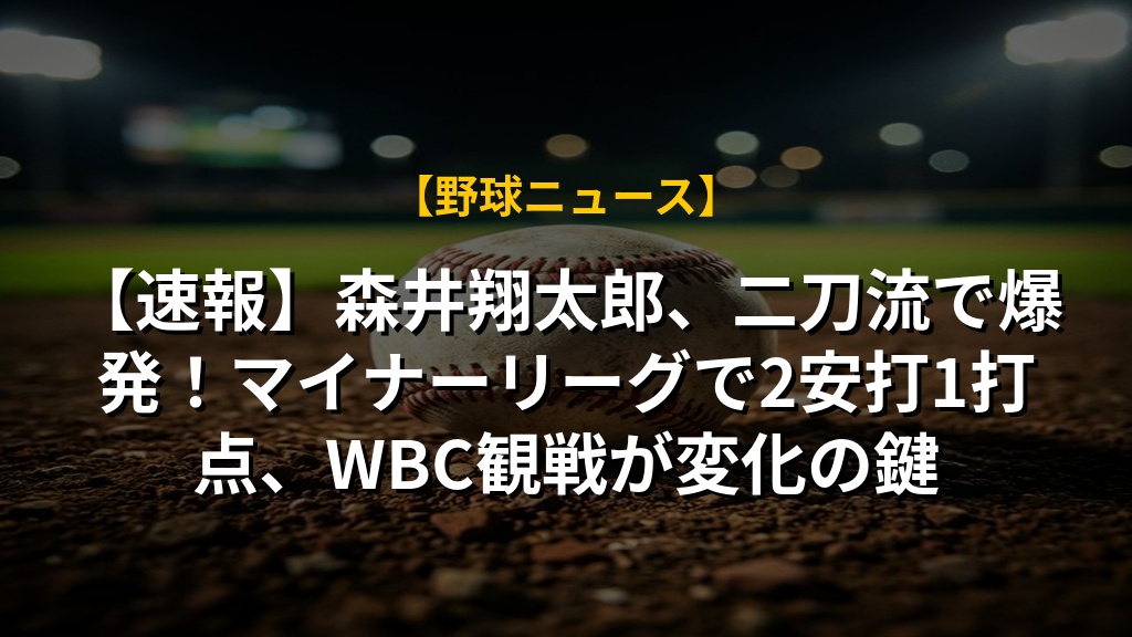 【速報】森井翔太郎、二刀流で爆発!マイナーリーグで2安打1打点、WBC観戦が変化の鍵