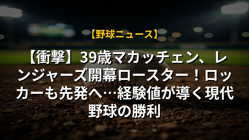 【衝撃】39歳マカッチェン、レンジャーズ開幕ロースター!ロッカーも先発へ…経験値が導く現代野球の勝利