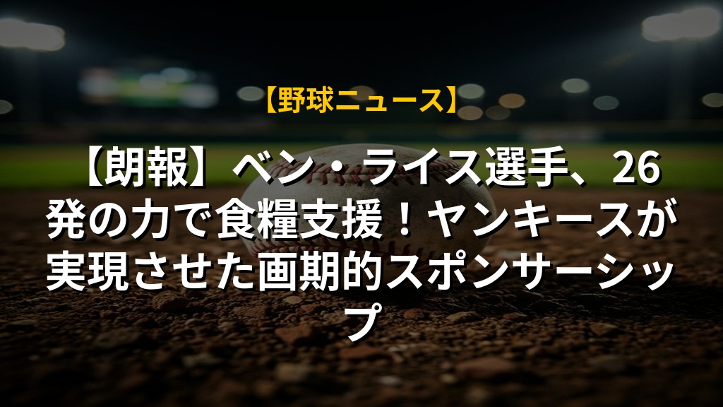 【朗報】ベン・ライス選手、26発の力で食糧支援!ヤンキースが実現させた画期的スポンサーシップ