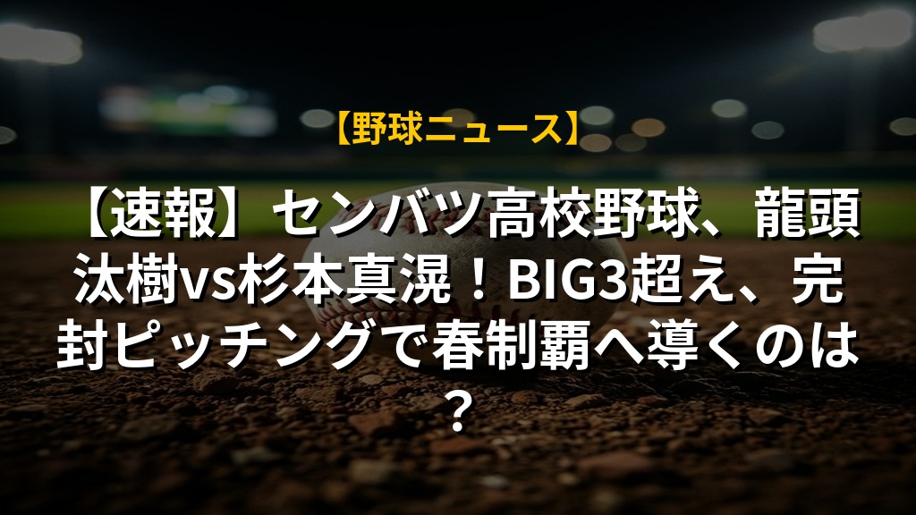 【速報】センバツ高校野球、龍頭汰樹vs杉本真滉!BIG3超え、完封ピッチングで春制覇へ導くのは?