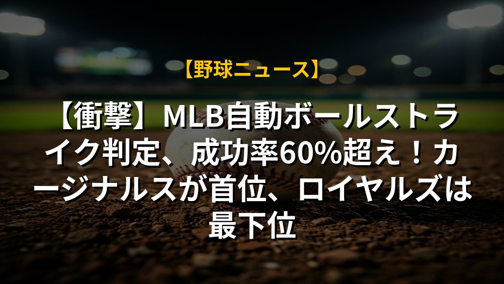 【衝撃】MLB自動ボールストライク判定、成功率60%超え!カージナルスが首位、ロイヤルズは最下位