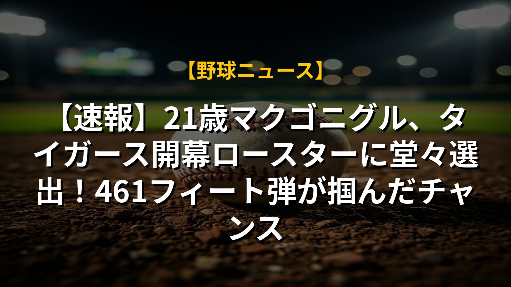 【速報】21歳マクゴニグル、タイガース開幕ロースターに堂々選出!461フィート弾が掴んだチャンス
