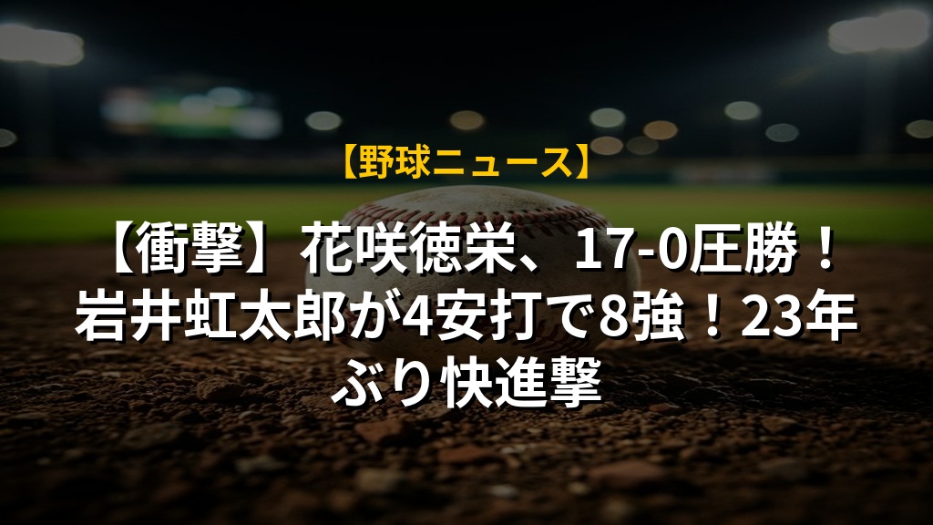 - 花咲徳栄が日本文理に17-0の大勝。岩井虹太郎選手が4安打1打点と大活躍し、23年ぶりの8強入りを牽引。