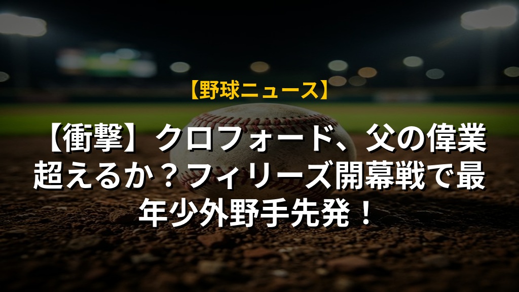 【衝撃】クロフォード、父の偉業超えるか?フィリーズ開幕戦で最年少外野手先発!