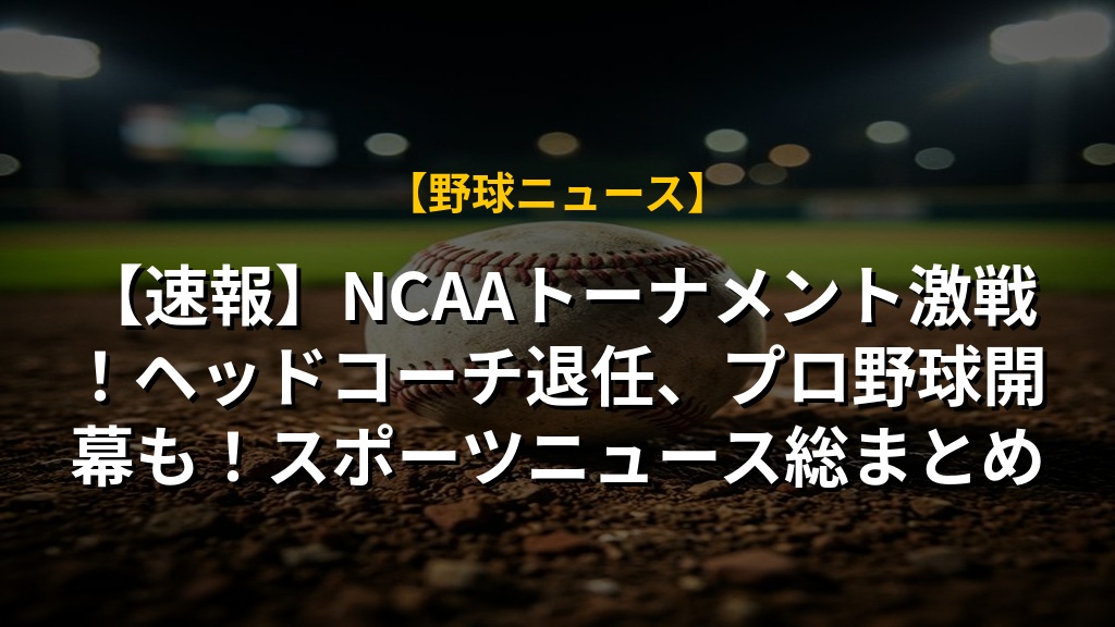 【速報】NCAAトーナメント激戦!ヘッドコーチ退任、プロ野球開幕も!スポーツニュース総まとめ