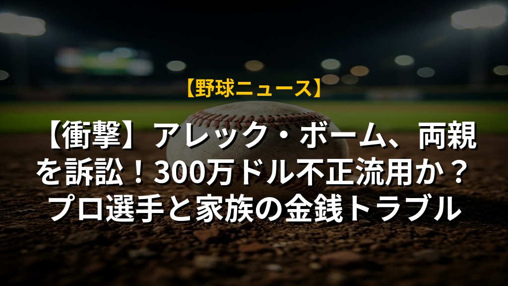 フィリーズのボーム選手が、両親を相手に数百万ドルの訴訟を起こした件で、親族間の金銭トラブルが明るみに出ました。両親は不正を否定していますが、アスリートが若くして得た資産管理は、周囲との信頼関係が重要であることが改めて浮き彫りになりました。