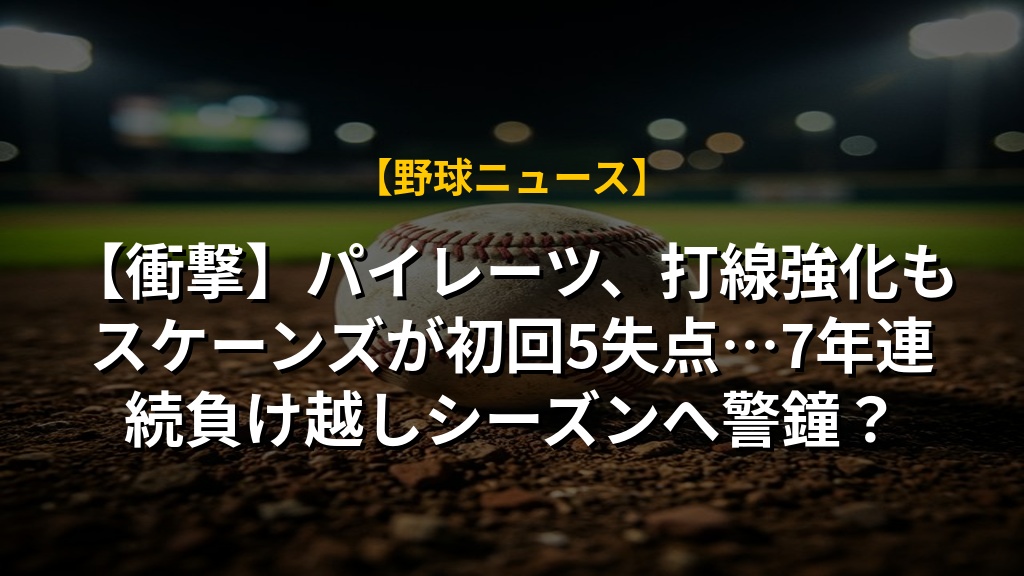 【衝撃】パイレーツ、打線強化もスケーンズが初回5失点…7年連続負け越しシーズンへ警鐘?