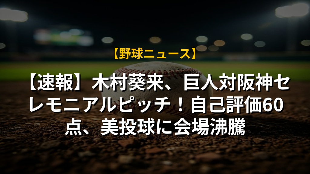 【速報】木村葵来、巨人対阪神セレモニアルピッチ!自己評価60点、美投球に会場沸騰