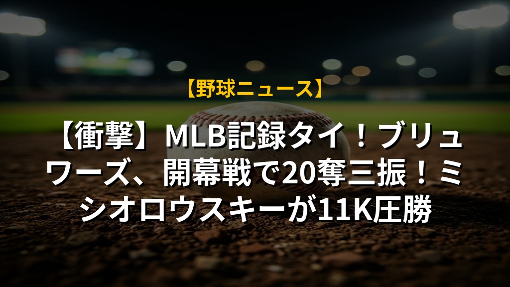 開幕戦でミルウォーキー・ブリュワーズが、なんと20奪三振というMLB記録に並ぶ圧巻の勝利を飾りました。初回に先制を許したミシオロウスキー投手が11三振を奪い、その後もブルペン陣がリレーで圧倒。特にディエル・ホールとウッドフォード投手の3者連続三振は圧巻でした。