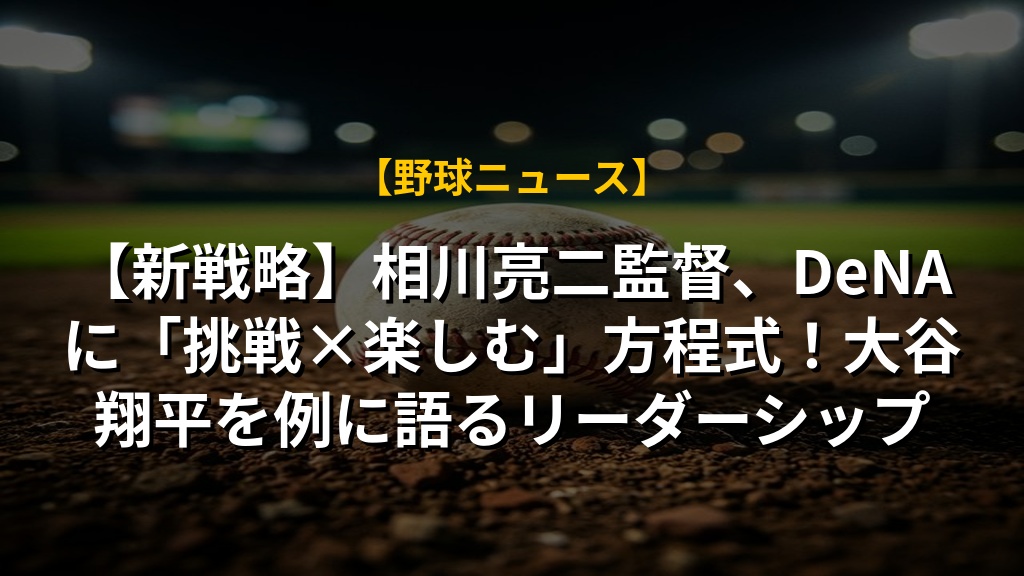 DeNA相川監督は、開幕戦惜敗も受け止め、選手個々の意思を尊重しながら「挑戦+楽しむ=最強」というチーム方針を改めて強調しました。過去の経験から「死に物狂い」という言葉を避け、大谷翔平選手を例に、楽しむことこそが成長の鍵だと語っています。