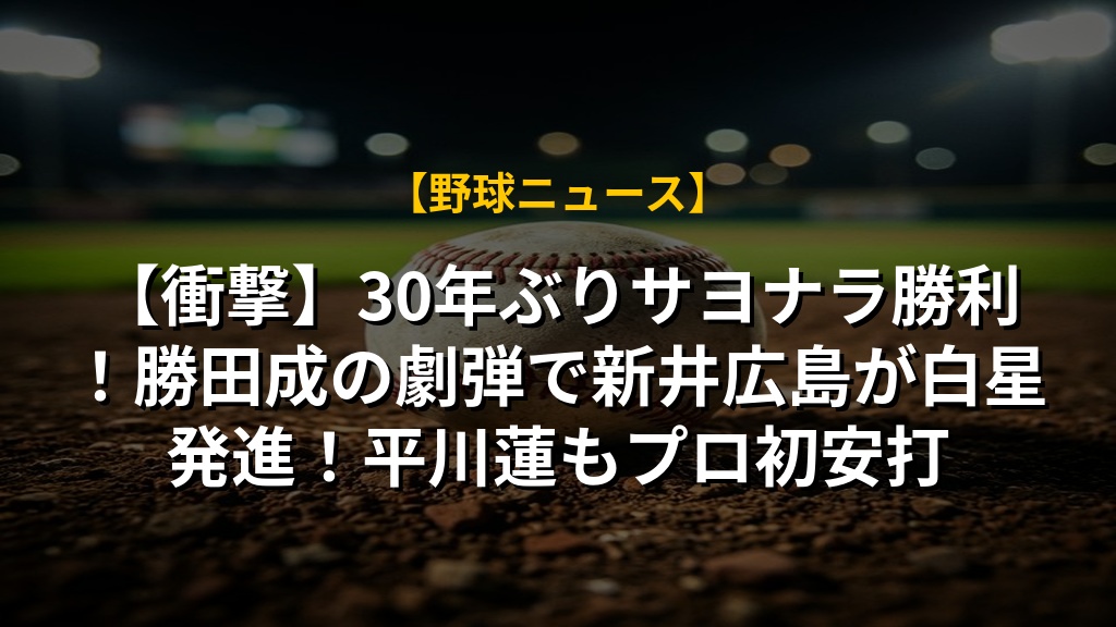 【衝撃】30年ぶりサヨナラ勝利!勝田成の劇弾で新井広島が白星発進!平川蓮もプロ初安打
