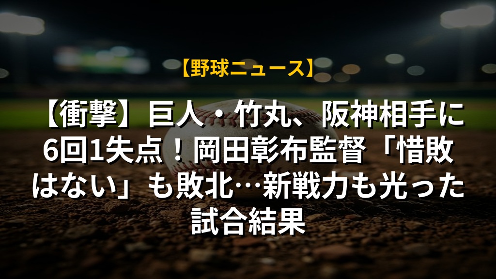 【衝撃】巨人・竹丸、阪神相手に6回1失点!岡田彰布監督「惜敗はない」も敗北…新戦力も光った試合結果