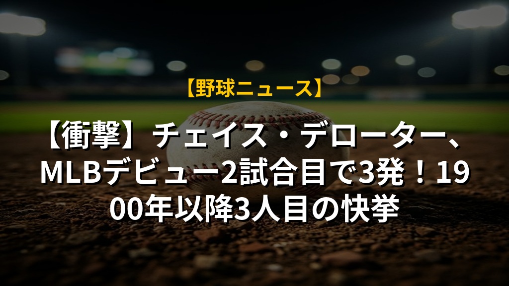 - チェース・デローター選手は、MLBデビューから2試合で3本塁打を記録。これは1900年以降で3人目の快挙。