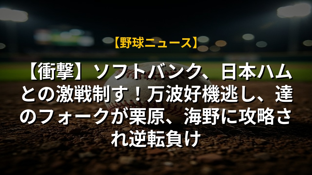 【衝撃】ソフトバンク、日本ハムとの激戦制す!万波好機逃し、達のフォークが栗原、海野に攻略され逆転負け