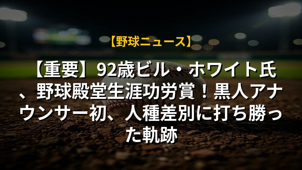【重要】92歳ビル・ホワイト氏、野球殿堂生涯功労賞!黒人アナウンサー初、人種差別に打ち勝った軌跡