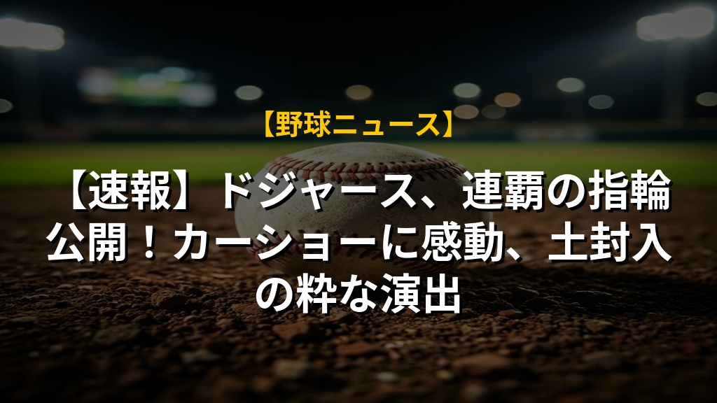 ドジャースが2025年ワールドシリーズ優勝を記念する指輪贈呈式を行いました。14Kゴールド製の指輪には、勝利の土が封入されるなど、特別な思いが込められています。引退したカーショー選手への贈呈は感動的で、彼のキャリアを称える素晴らしい瞬間でした。