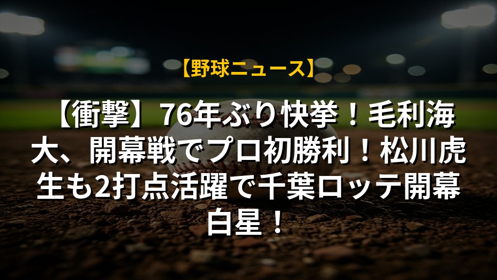 【衝撃】76年ぶり快挙!毛利海大、開幕戦でプロ初勝利!松川虎生も2打点活躍で千葉ロッテ開幕白星!