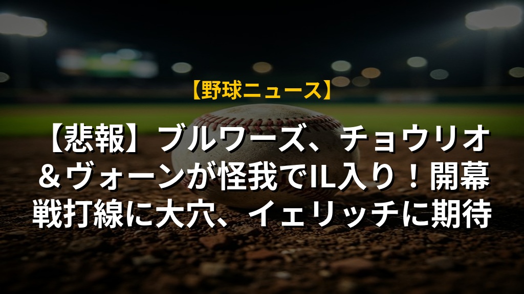 【悲報】ブルワーズ、チョウリオ&ヴォーンが怪我でIL入り!開幕戦打線に大穴、イェリッチに期待