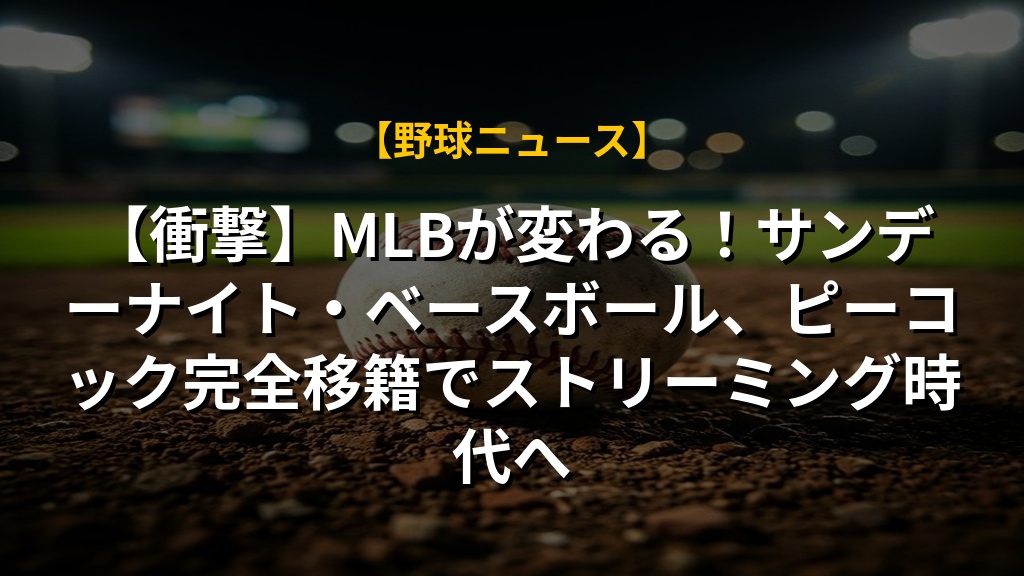 【衝撃】MLBが変わる!サンデーナイト・ベースボール、ピーコック完全移籍でストリーミング時代へ