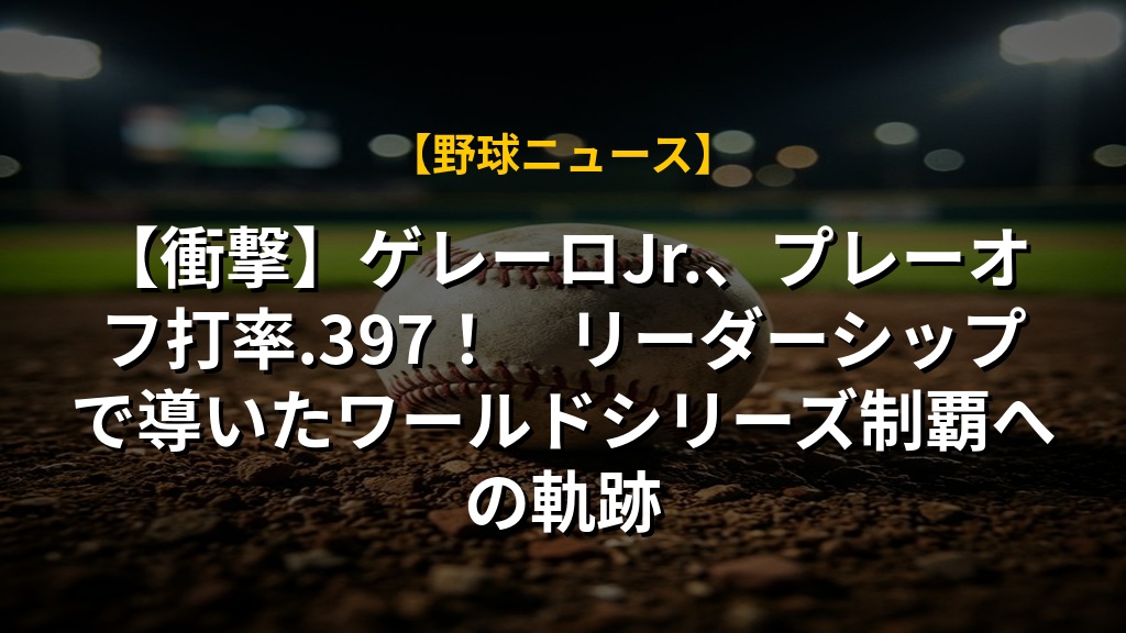 【衝撃】ゲレーロJr.、プレーオフ打率.397! リーダーシップで導いたワールドシリーズ制覇への軌跡