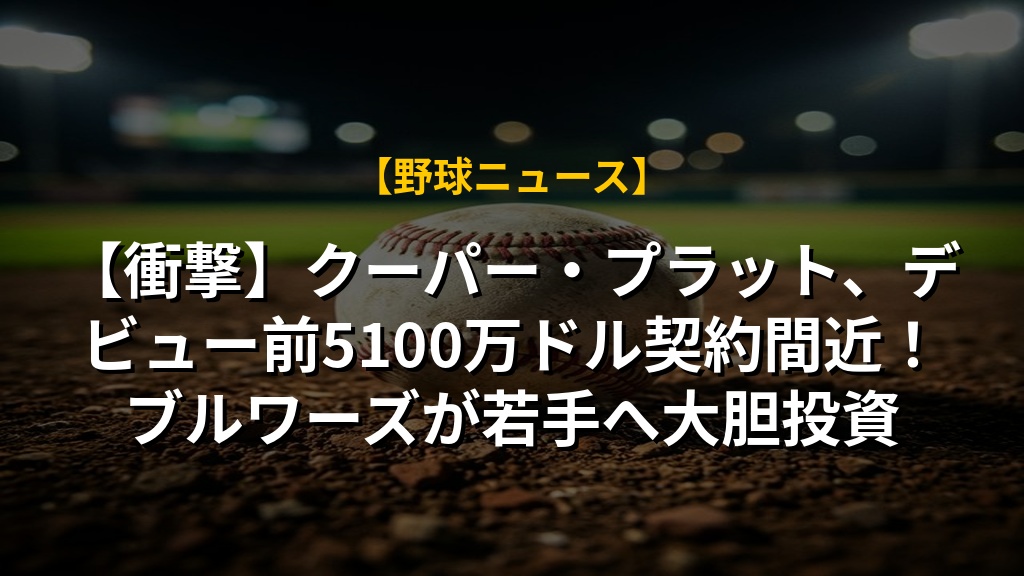 大型契約締結寸前のクーパー・プラット選手、デビュー前にも関わらず8年5100万ドルという破格の契約は、球団の若手重視戦略を象徴していますね。守備力と選球眼の高さは大きな魅力ですが、パワー向上がカギとなりそうです。