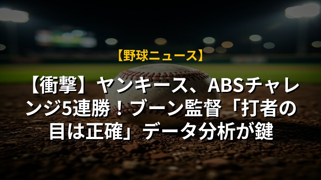 ヤンキースの自動ボールストライクシステム(ABS)チャレンジ成功事例は、単なる好成績ではありません。