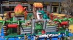 スタジアム各所に巨大恐竜遊具やゾーブボール、エアローラー、エアボルダリングなどのふわふわ遊具が設置され、3歳から中学生までが無料で利用できる。