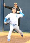 ミヤニシ・ナオオ投手(40)は、2軍沖縄・クニガミから1軍沖縄・ナゴへ移り、通算219勝左腕のヤマモト・マサル氏(60)から臨時コーチとして指導を受けた。