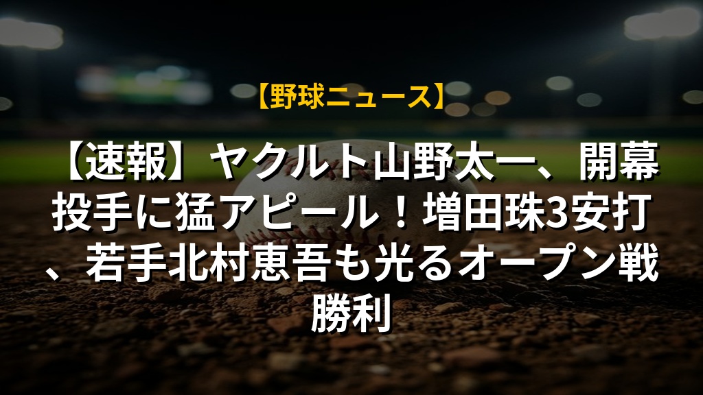 【速報】ヤクルト山野太一、開幕投手に猛アピール!増田珠3安打、若手北村恵吾も光るオープン戦勝利