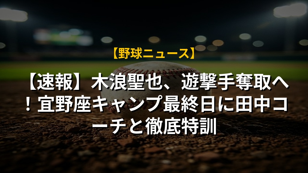 【速報】木浪聖也、遊撃手奪取へ!宜野座キャンプ最終日に田中コーチと徹底特訓
