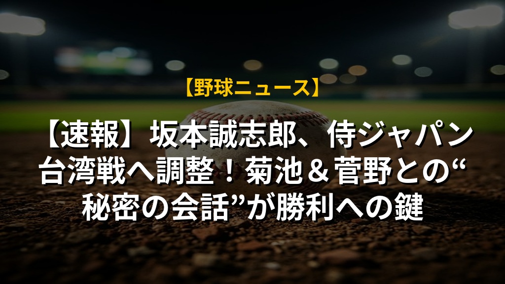 【速報】坂本誠志郎、侍ジャパン台湾戦へ調整!菊池&菅野との“秘密の会話”が勝利への鍵