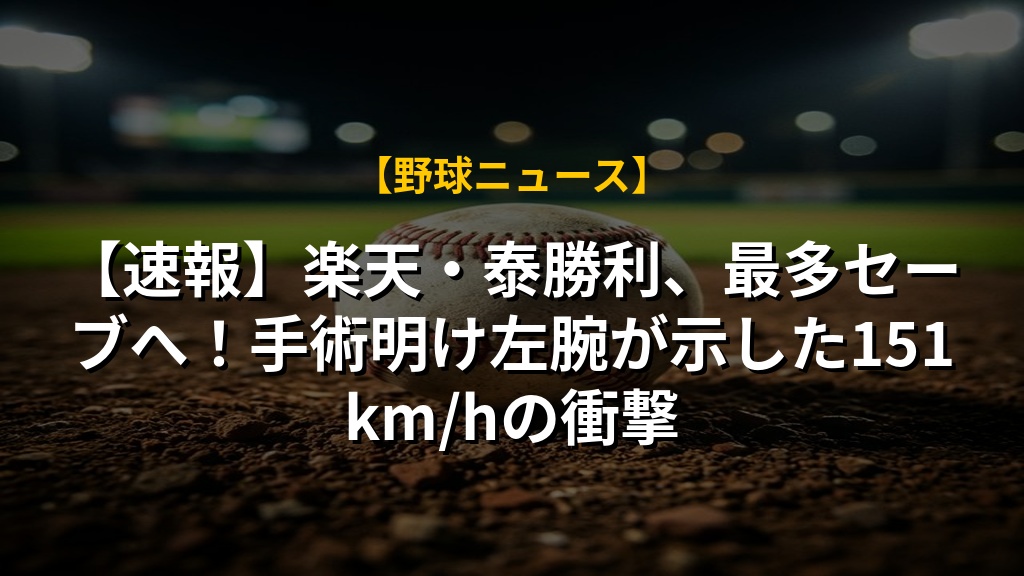 【速報】楽天・泰勝利、最多セーブへ!手術明け左腕が示した151km/hの衝撃