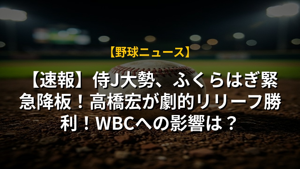 【速報】侍J大勢、ふくらはぎ緊急降板!高橋宏が劇的リリーフ勝利!WBCへの影響は?