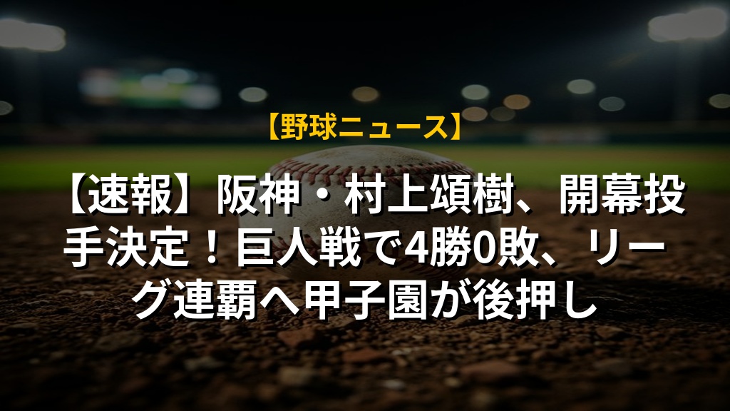【速報】阪神・村上頌樹、開幕投手決定!巨人戦で4勝0敗、リーグ連覇へ甲子園が後押し