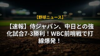 ラグザス 侍ジャパンシリーズ2026において、侍ジャパンが中日を7対3で破り連勝を飾った。