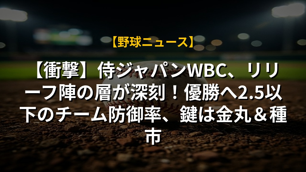- 過去のWBCでチーム防御率2.5以下が優勝条件。リリーフ陣の強化が、勝利への鍵となる。