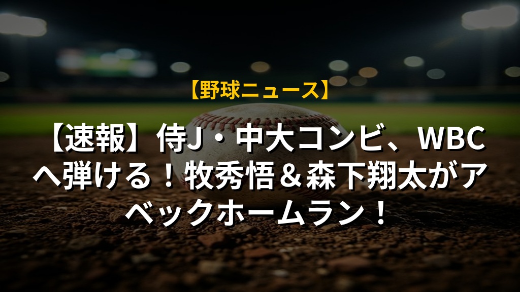侍ジャパンシリーズ2026の中日戦で、牧秀悟選手と森下翔太選手の中大コンビがアベックホームランを放ち、チームの勝利に大きく貢献した。