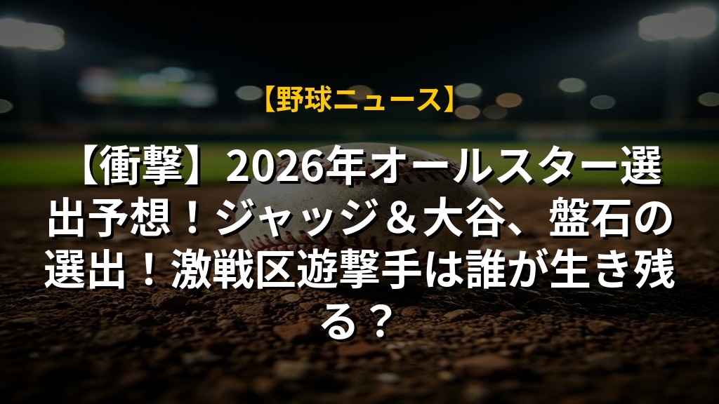 【衝撃】2026年オールスター選出予想!ジャッジ&大谷、盤石の選出!激戦区遊撃手は誰が生き残る?