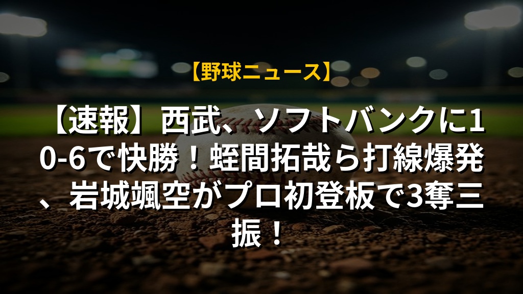 【速報】西武、ソフトバンクに10-6で快勝!蛭間拓哉ら打線爆発、岩城颯空がプロ初登板で3奪三振!