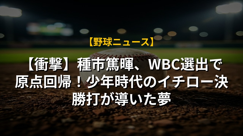 【衝撃】種市篤暉、WBC選出で原点回帰!少年時代のイチロー決勝打が導いた夢
