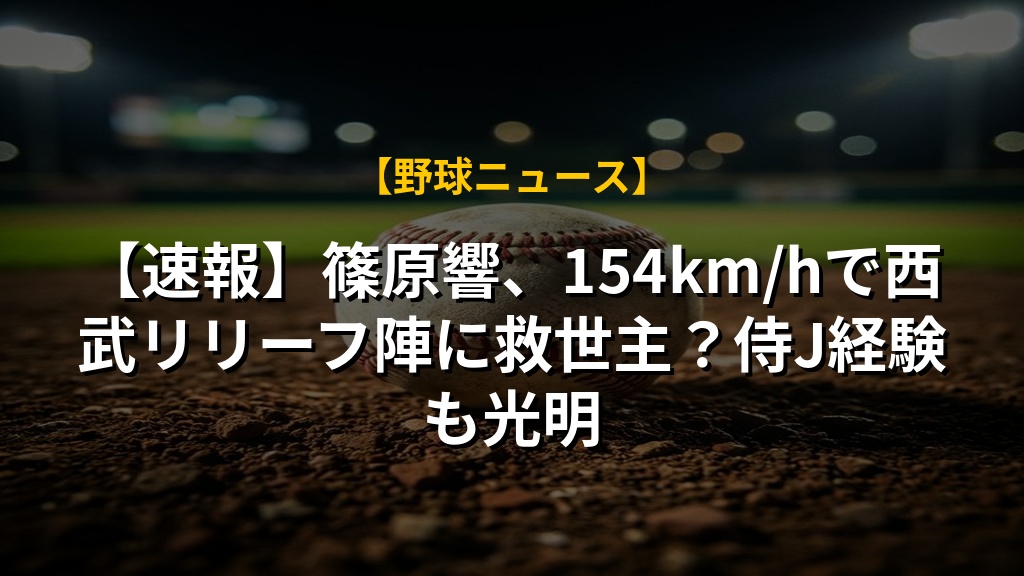 【速報】篠原響、154km/hで西武リリーフ陣に救世主?侍J経験も光明