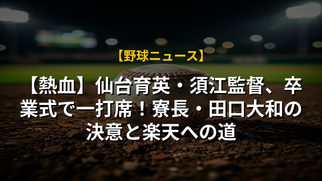 【熱血】仙台育英・須江監督、卒業式で一打席!寮長・田口大和の決意と楽天への道