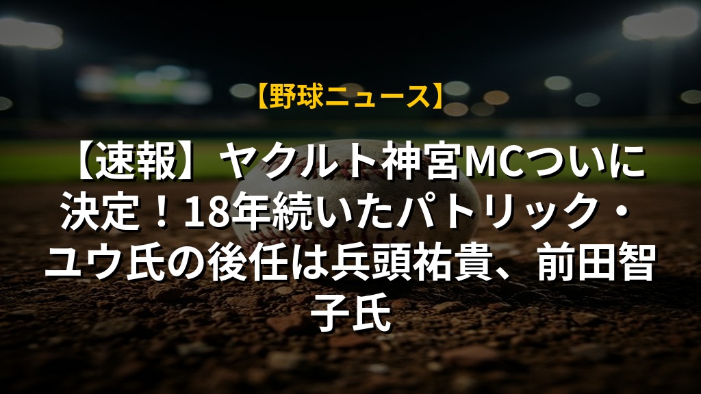 【速報】ヤクルト神宮MCついに決定!18年続いたパトリック・ユウ氏の後任は兵頭祐貴、前田智子氏