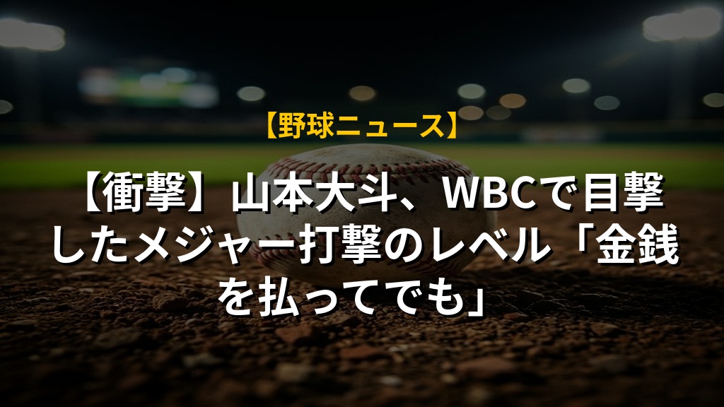 【衝撃】山本大斗、WBCで目撃したメジャー打撃のレベル「金銭を払ってでも」