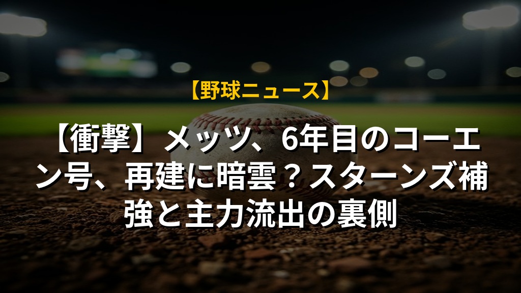 【衝撃】メッツ、6年目のコーエン号、再建に暗雲?スターンズ補強と主力流出の裏側